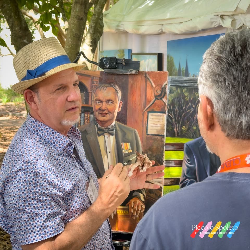 Here I am at Spoleto, sharing a little of the portrait process I used in the creation of this oil painting, with some passing kids.