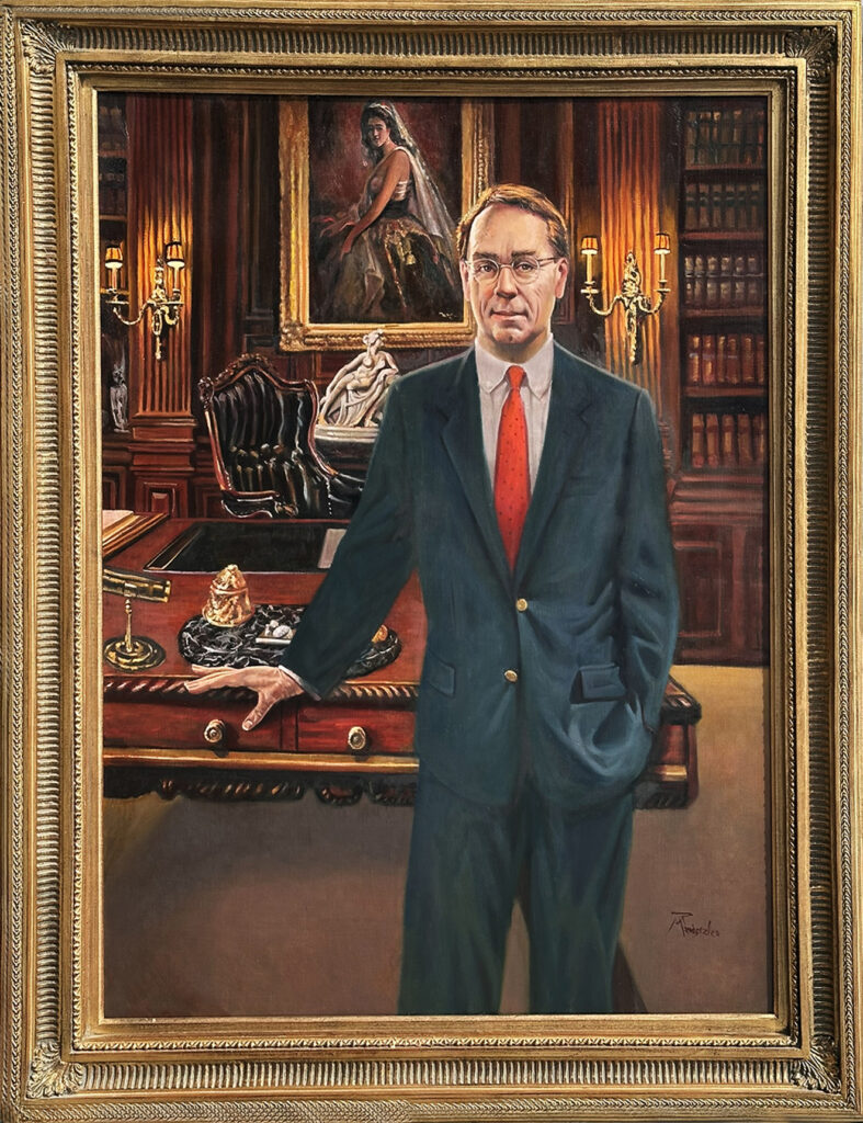 Portrait of Gedney Howe III in main office, designed by Buzz Harper