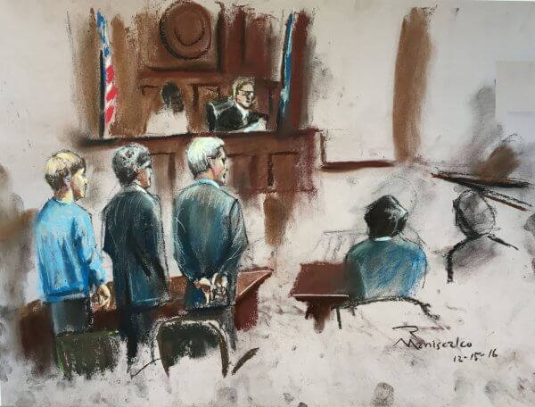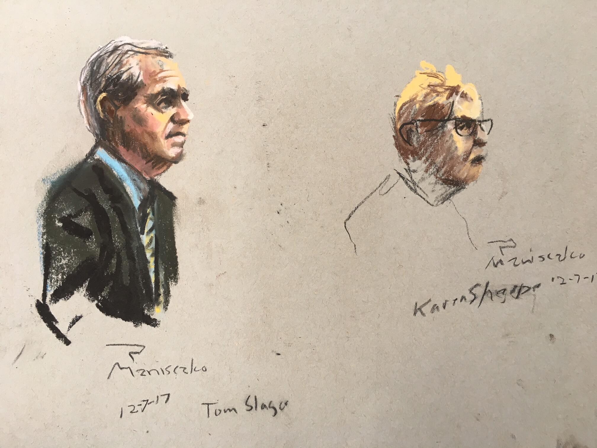 The Michael Slager Federal Courtroom Drawings from December 7, 21017 Sentencing Hearing. Tom Slager (Michael’s father) and Karen Sharpe (Michael’s mother) testify.